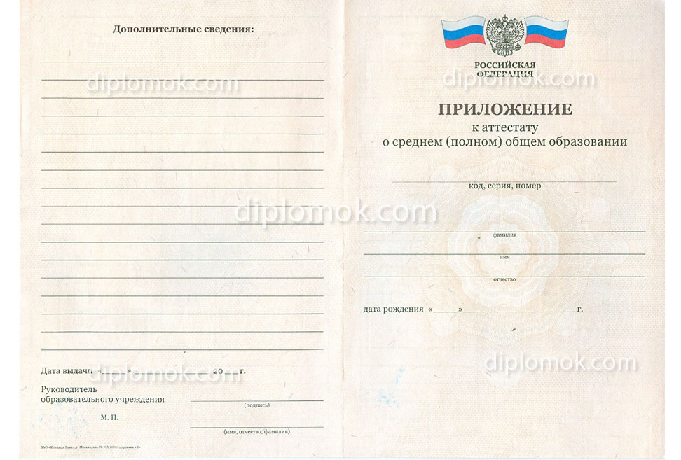 - Комплект: Аттестат + приложение + обложка